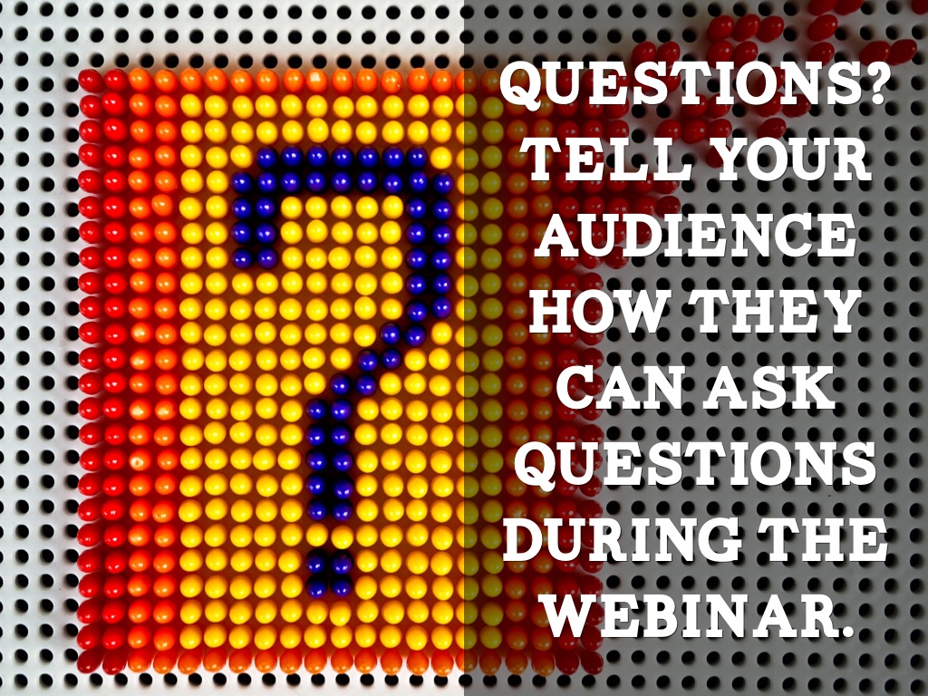 Webinars will usually allow listeners to make comments and ask questions during the show; tell your audience where and how they can ask their questions and give feedback.