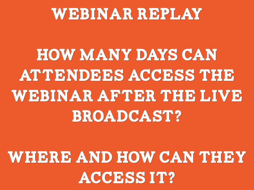 Can your audience replay the webinar after the live broadcast? Let them know where and how long it will be available for viewing after the live broadcast.