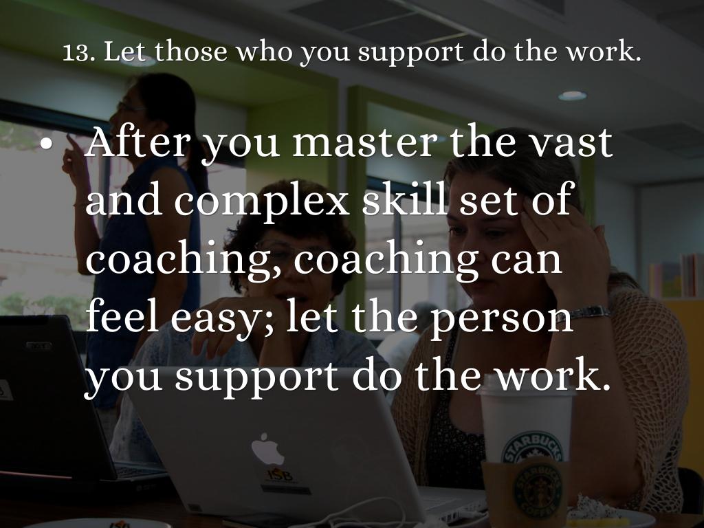 • After you master the vast and complex skill set of coaching, coaching can feel easy; let the person you support do the work.