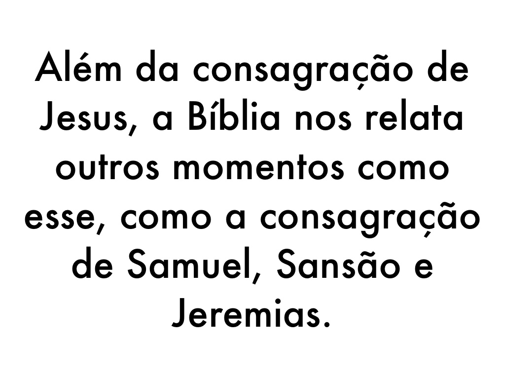 Além da consagração de Jesus, a Bíblia nos relata outros momentos como esse, como a consagração de Samuel, Sansão e Jeremias.