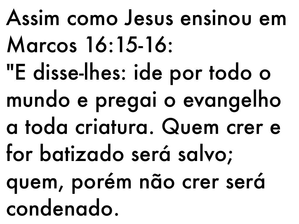 Assim como Jesus ensinou em Marcos 16:15-16: