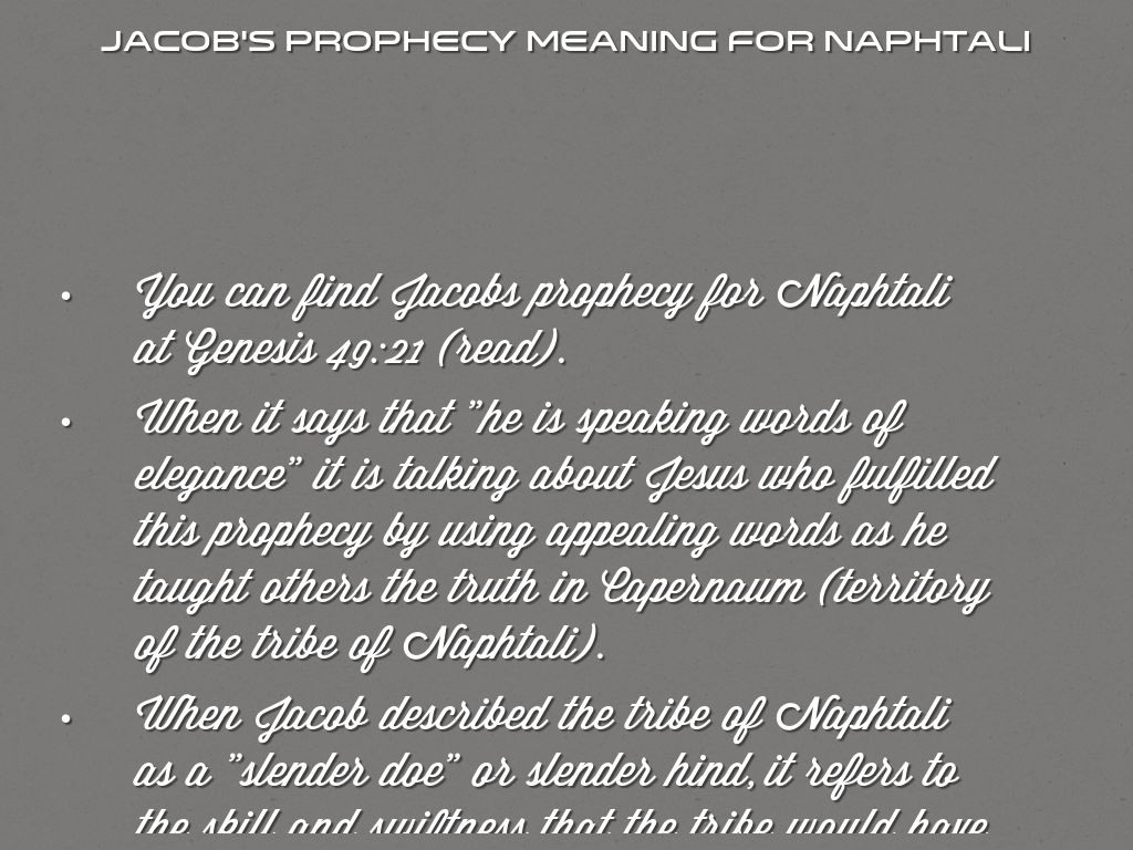 • You can find Jacobs prophecy for Naphtali at Genesis 49:21 (read).