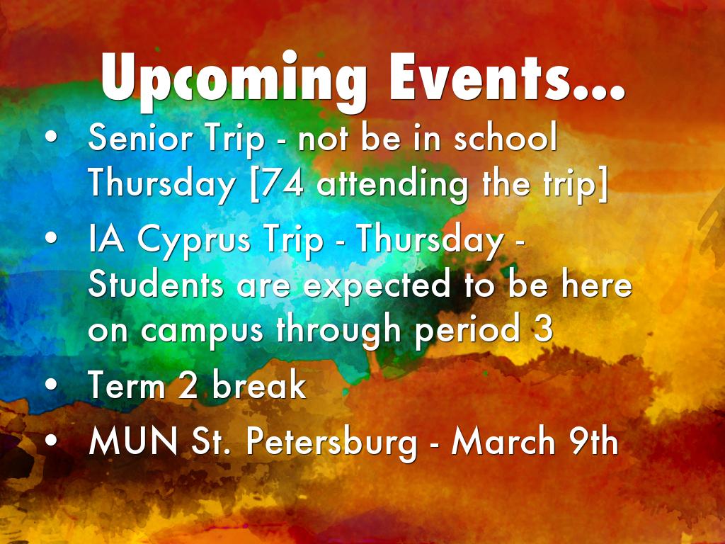 IA Cyprus Trip - Thursday - Students are expected to be here on campus through period 3