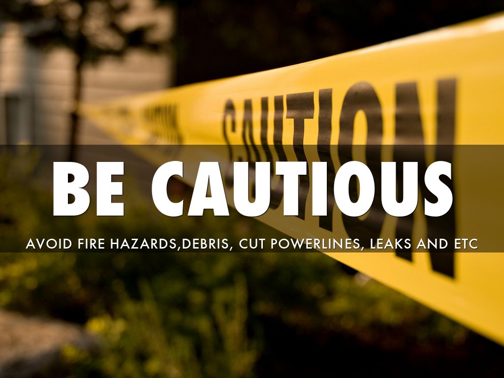 AVOID FIRE HAZARDS,DEBRIS, CUT POWERLINES, LEAKS AND ETC