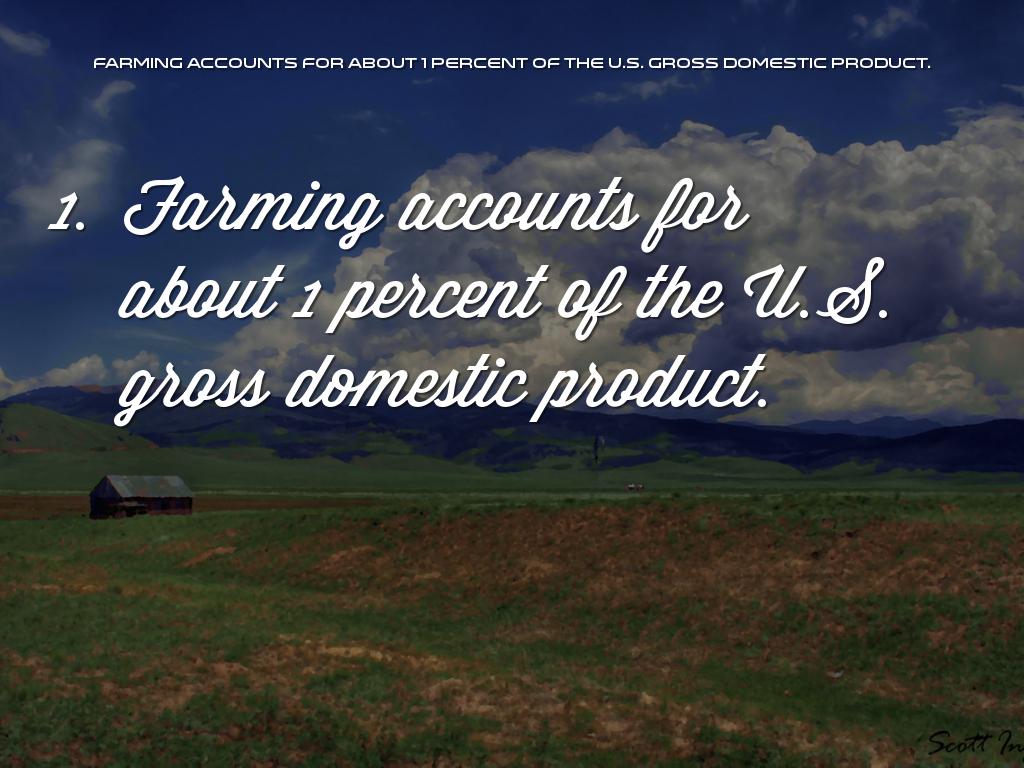 Farming accounts for about 1 percent of the U.S. gross domestic product.