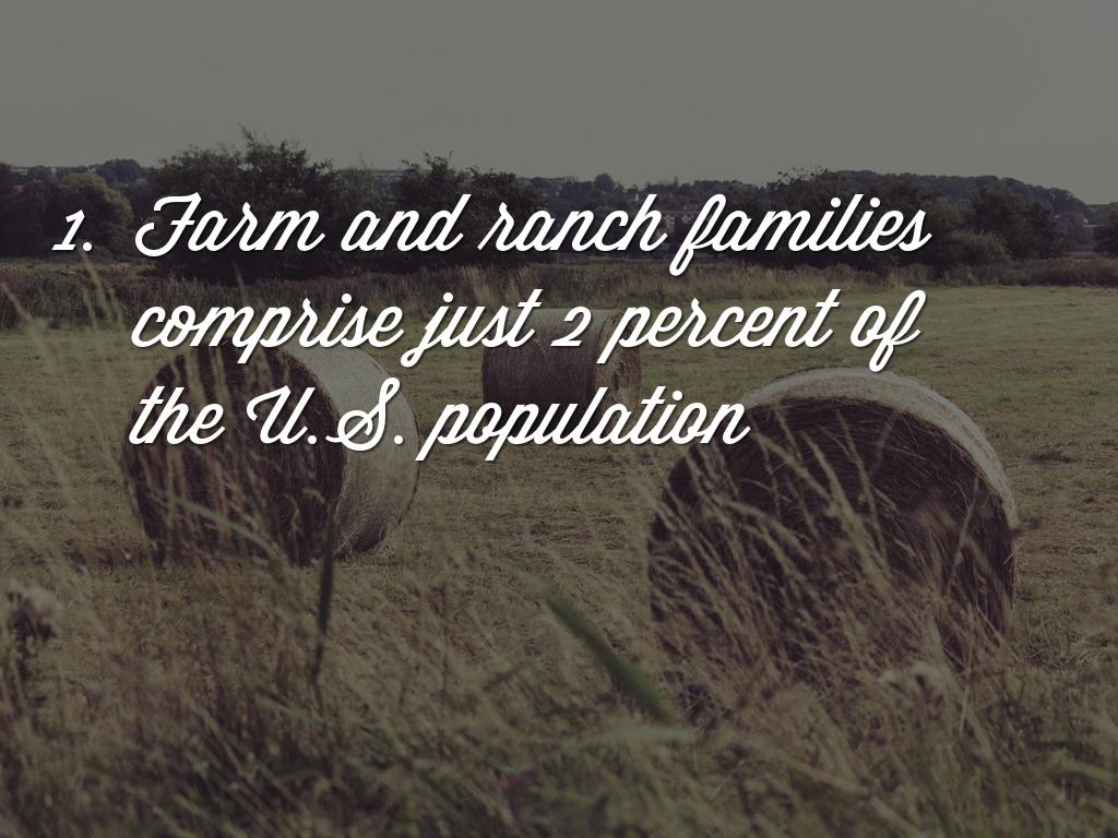 Farm and ranch families comprise just 2 percent of the U.S. population
