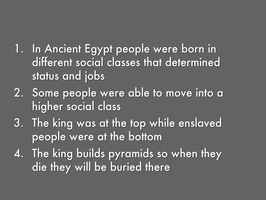 In Ancient Egypt people were born in different social classes that determined status and jobs
