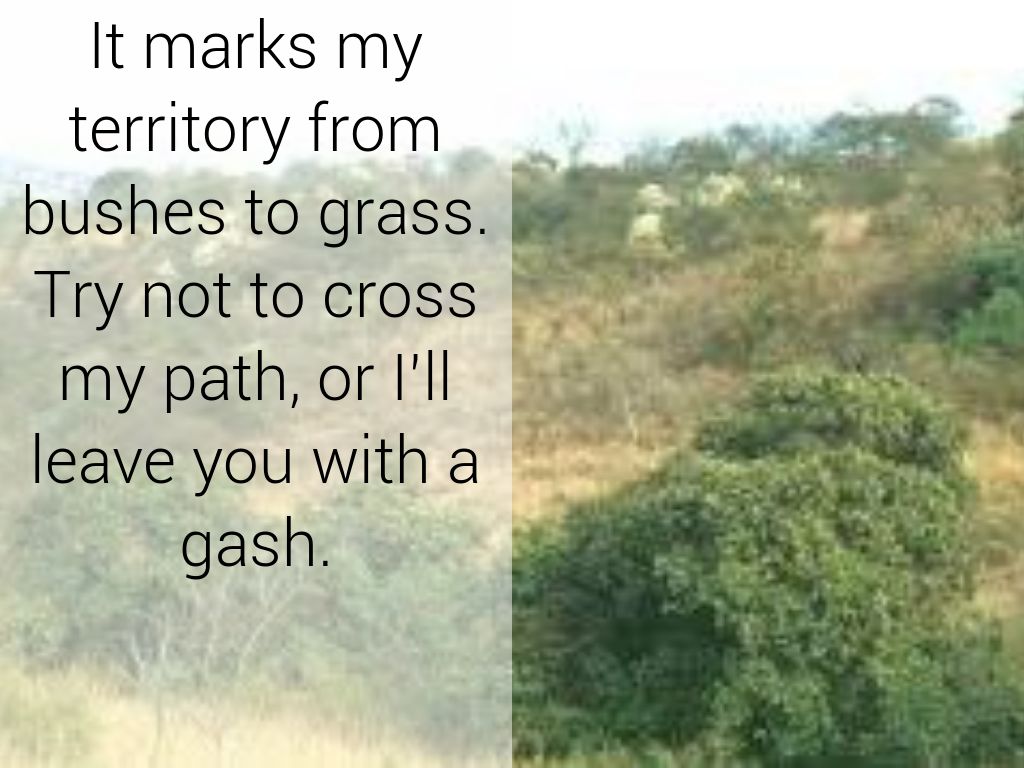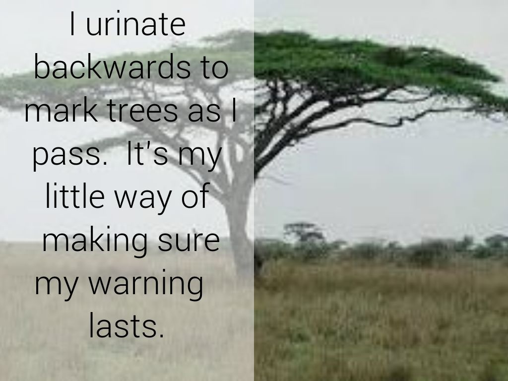 I urinate backwards to mark trees as I pass. It’s my little way of making sure my warning lasts.