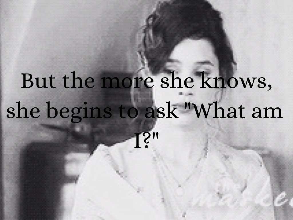 But the more she knows, she begins to ask "What am I?"