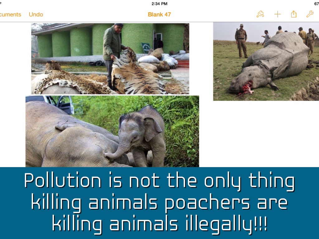 Pollution is not the only thing killing animals poachers are killing animals illegally!!!