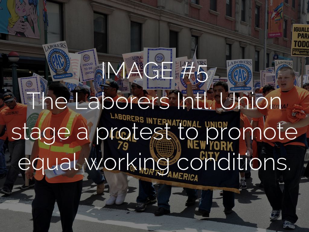The Laborers Intl. Union stage a protest to promote equal working conditions.