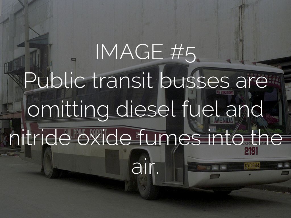 Public transit busses are omitting diesel fuel and nitride oxide fumes into the air.
