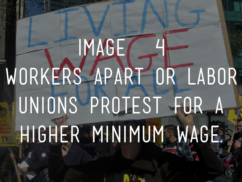 Workers apart or labor unions protest for a higher minimum wage.