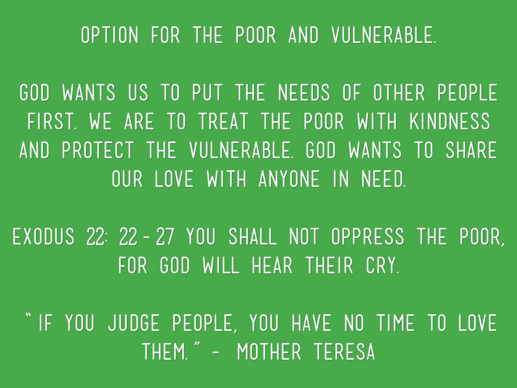 Option for the Poor and Vulnerable.