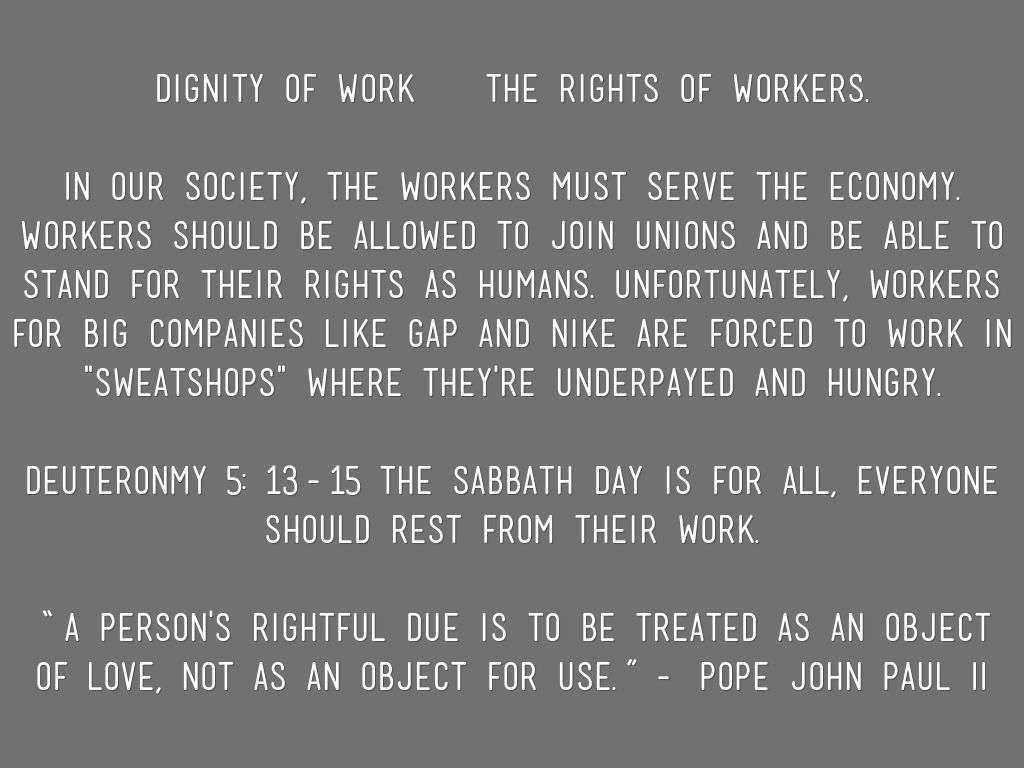 Dignity of Work & the Rights of Workers.