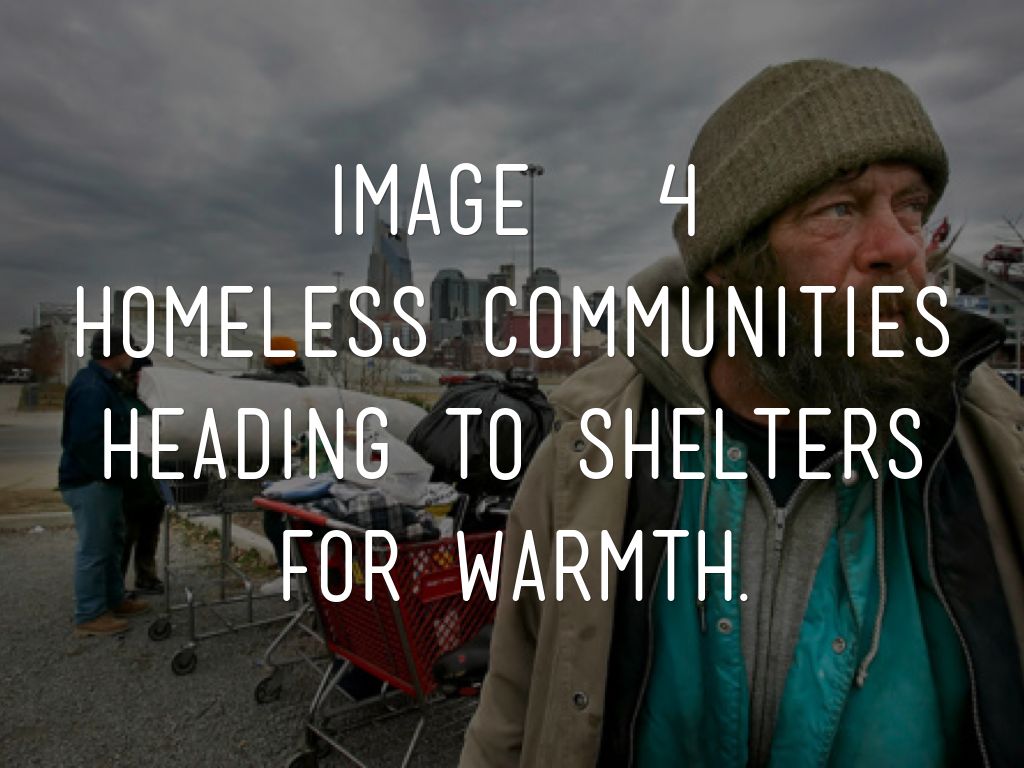 Homeless communities heading to shelters for warmth.