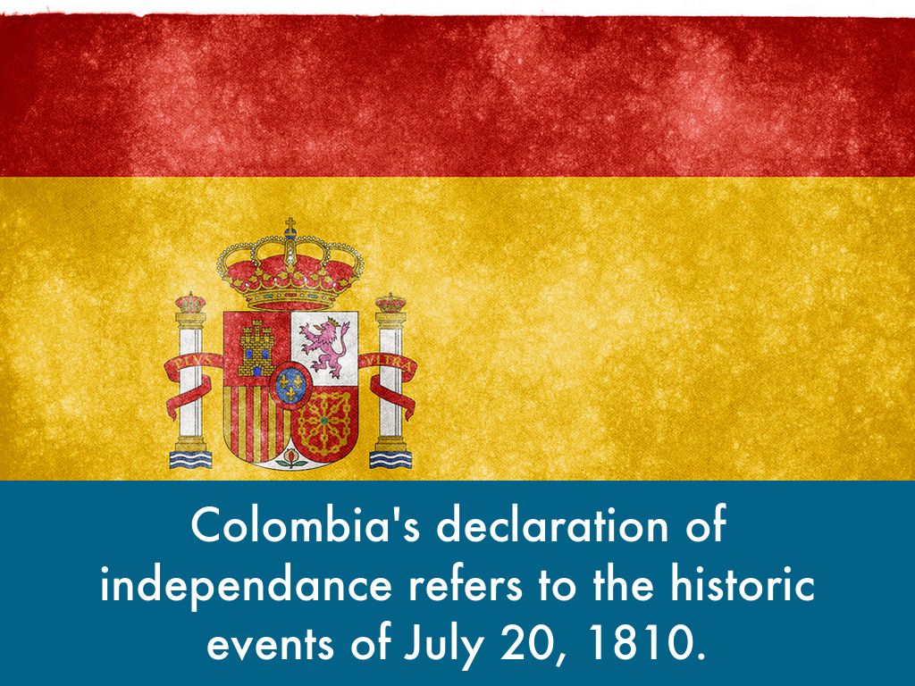 Colombia's declaration of independance refers to the historic events of July 20, 1810.