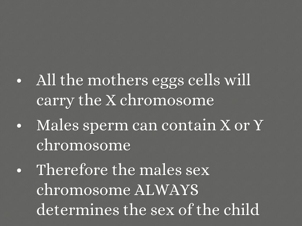 - Therefore the males sex chromosome ALWAYS determines the sex of the child