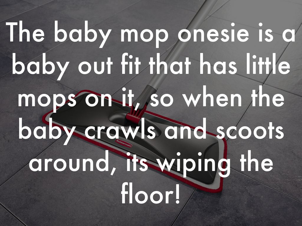 The baby mop onesie is a baby out fit that has little mops on it, so when the baby crawls and scoots around, its wiping the floor!