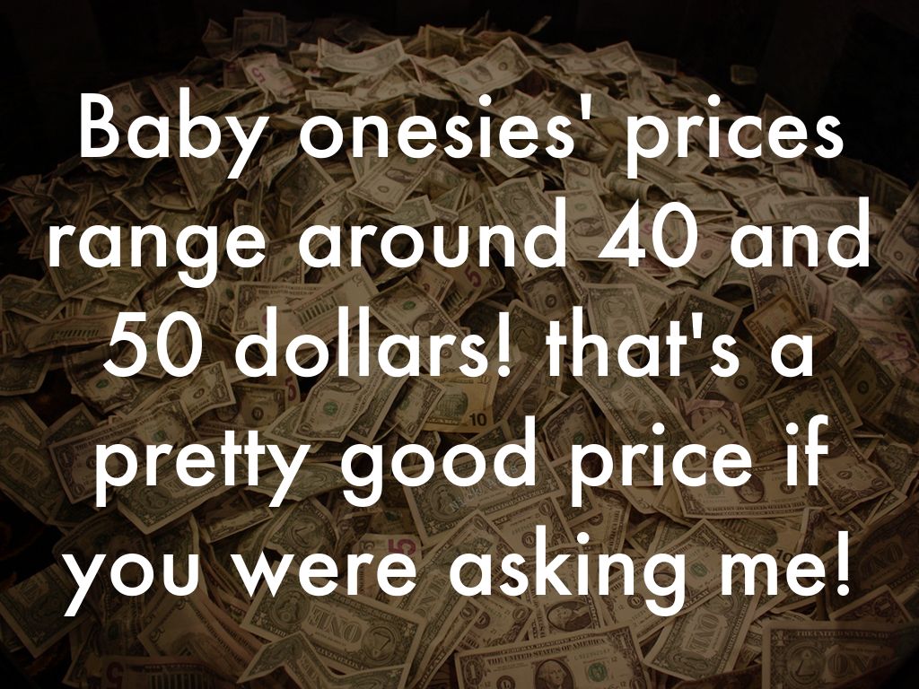 Baby onesies' prices range around 40 and 50 dollars! that's a pretty good price if you were asking me!