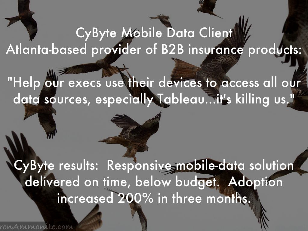 CyByte results: Responsive mobile-data solution delivered on time, below budget. Adoption increased 200% in three months.
