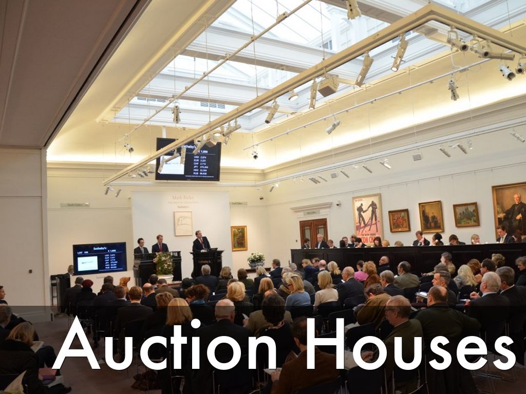 Christie's and Sotheby's are the two largest players. Others include Phillips and Bonhams. Visit their websites for a calendar of sales which you can attend by RSVPing.