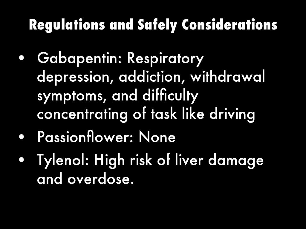 • Gabapentin: Respiratory depression, addiction, withdrawal symptoms, and difficulty concentrating of task like driving
