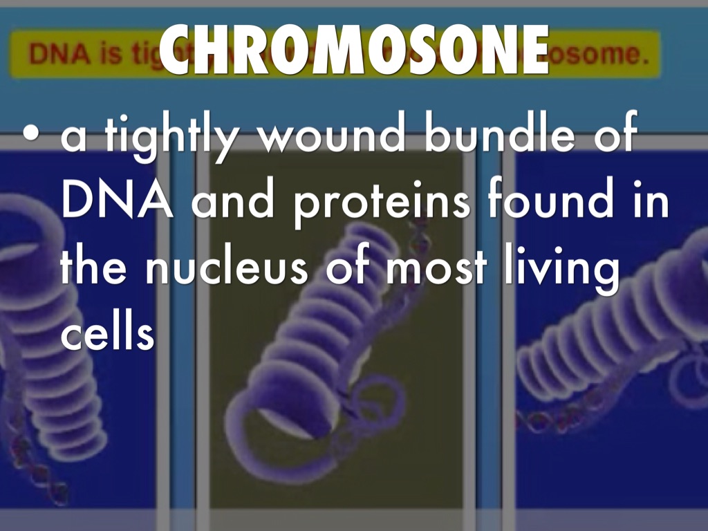 • a tightly wound bundle of DNA and proteins found in the nucleus of most living cells