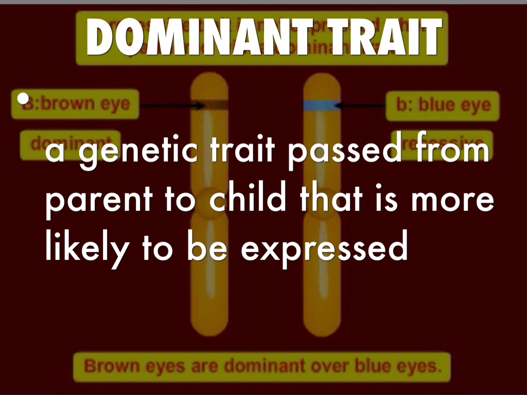 • a genetic trait passed from parent to child that is more likely to be expressed
