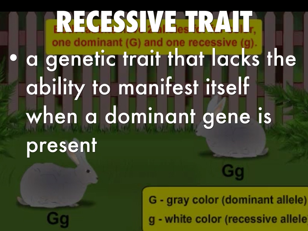 • a genetic trait that lacks the ability to manifest itself when a dominant gene is present