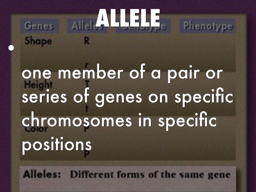 • one member of a pair or series of genes on specific chromosomes in specific positions