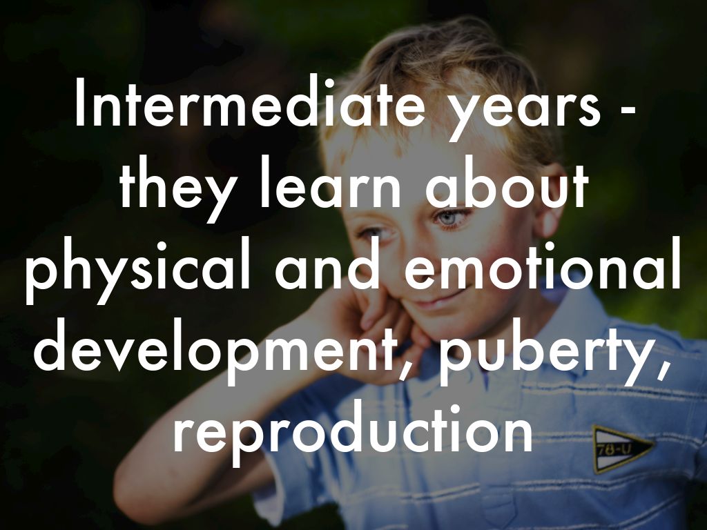 Intermediate years - they learn about physical and emotional development, puberty, reproduction
