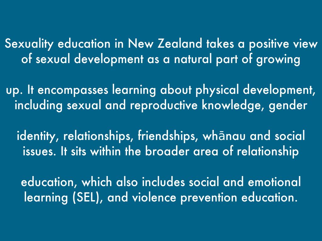 Sexuality education in New Zealand takes a positive view of sexual development as a natural part of growing