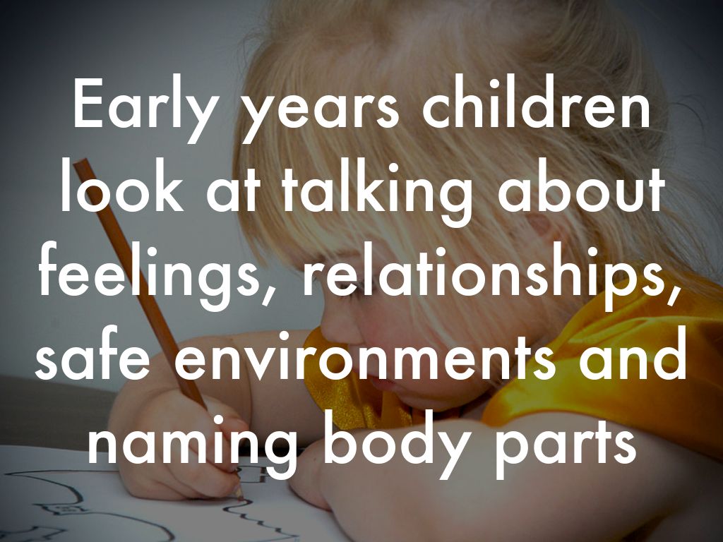 Early years children look at talking about feelings, relationships, safe environments and naming body parts