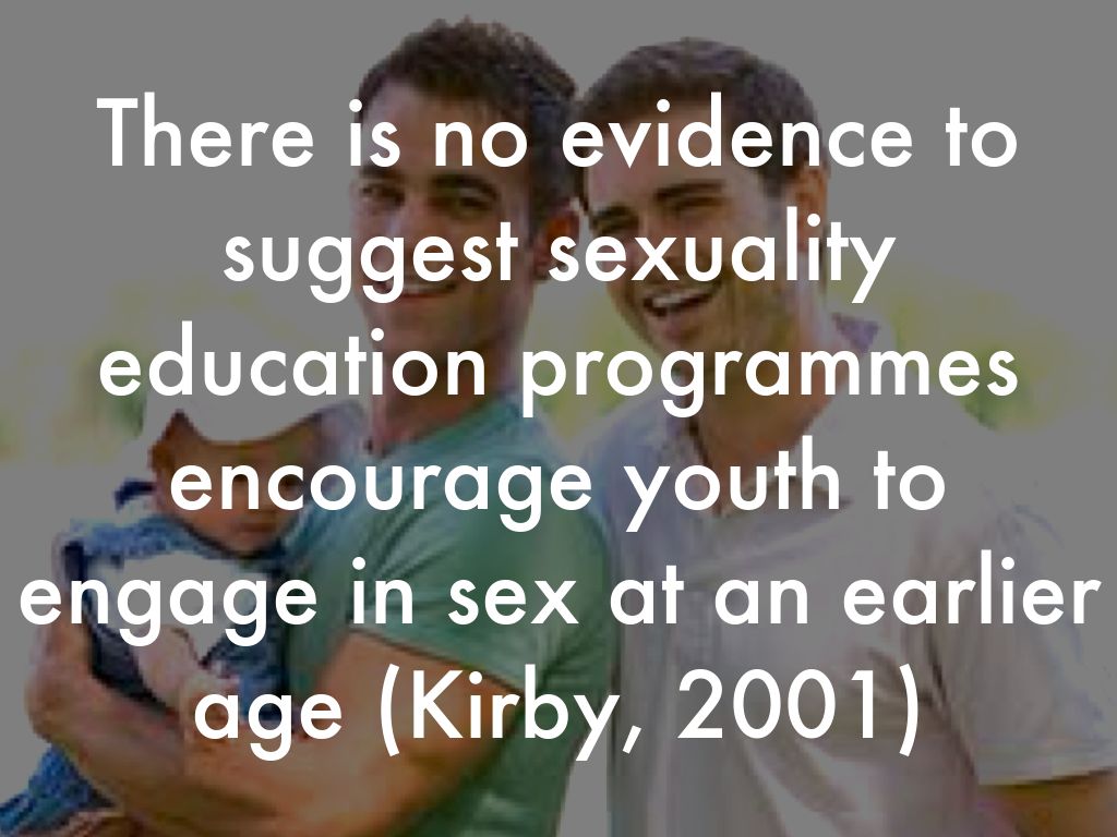 There is no evidence to suggest sexuality education programmes encourage youth to engage in sex at an earlier age (Kirby, 2001)