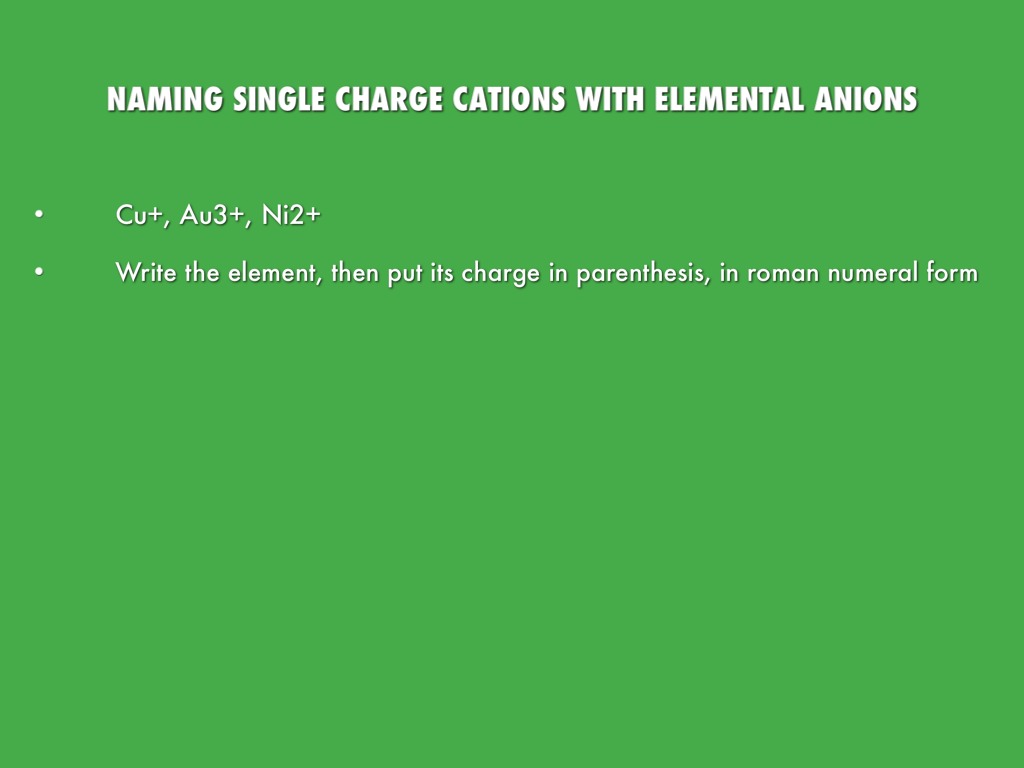 NAMING SINGLE CHARGE CATIONS WITH ELEMENTAL ANIONS