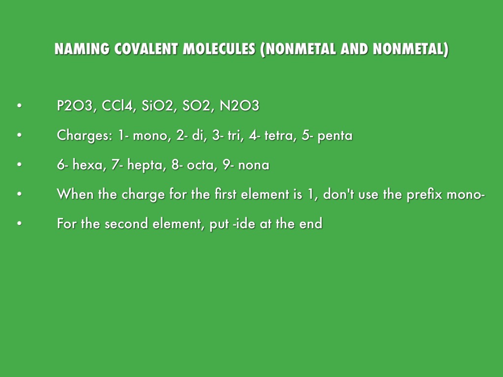 NAMING COVALENT MOLECULES (NONMETAL AND NONMETAL)