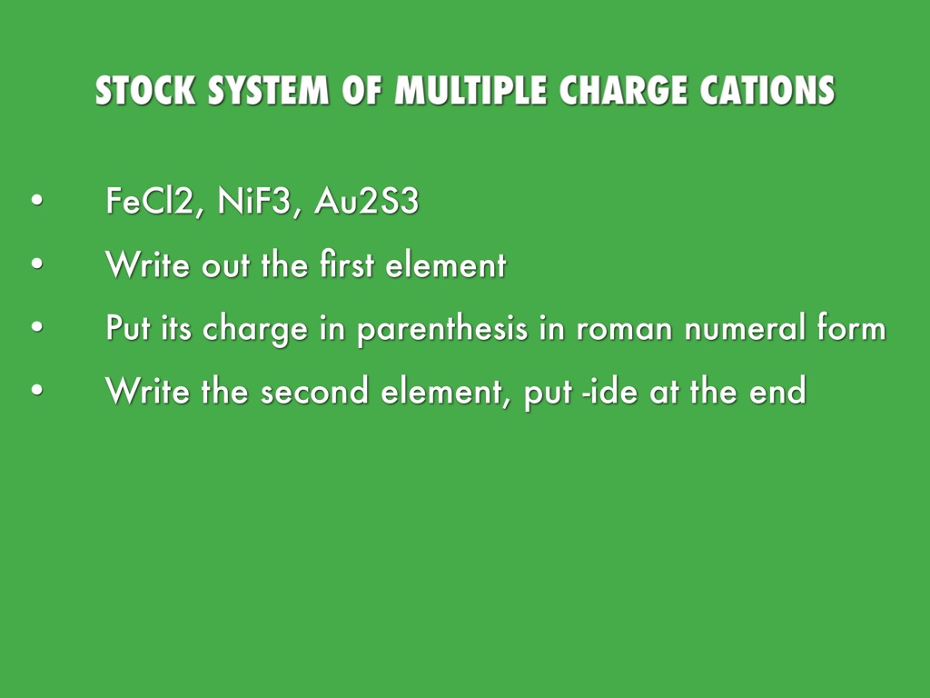 STOCK SYSTEM OF MULTIPLE CHARGE CATIONS