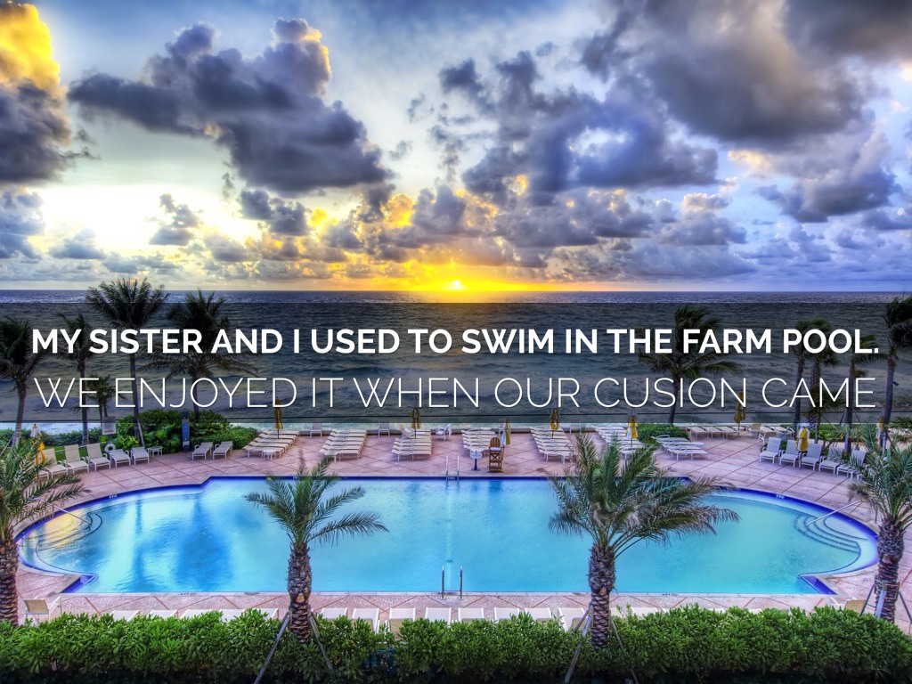 MY SISTER AND I USED TO SWIM IN THE FARM POOL.