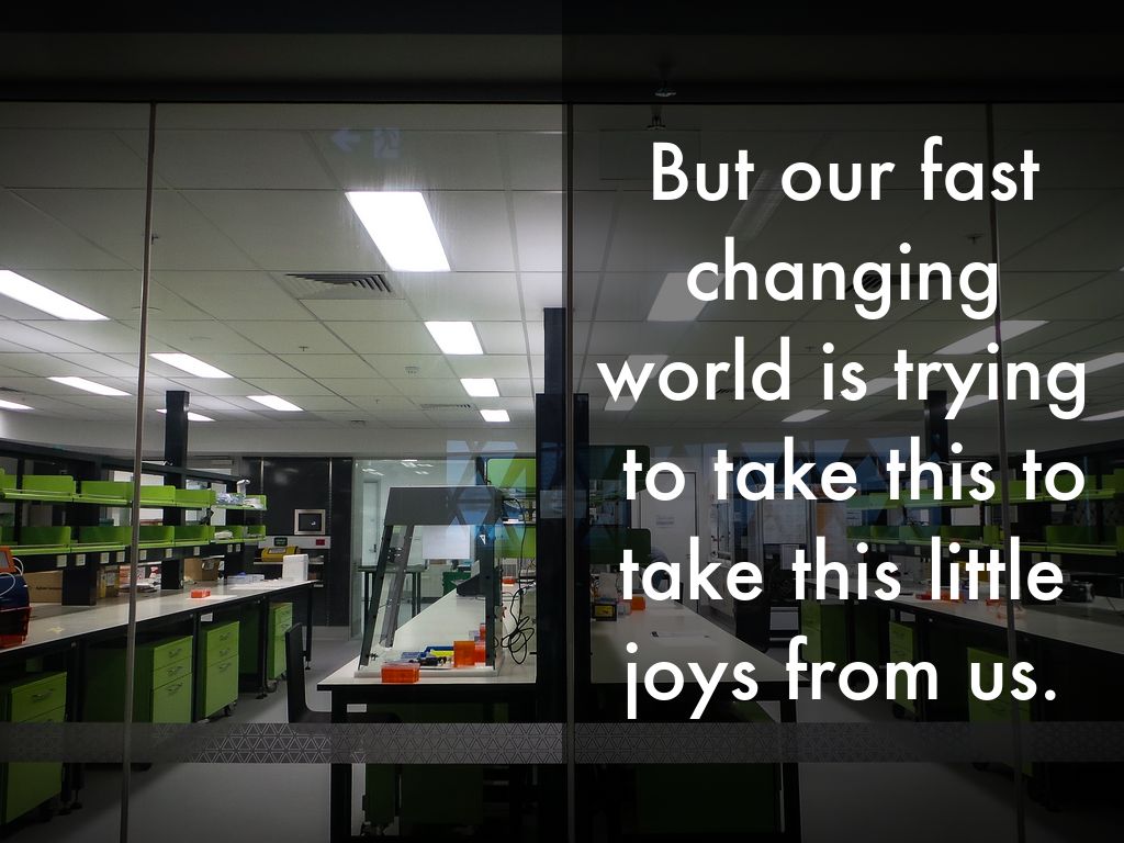 But our fast changing world is trying to take this to take this little joys from us.