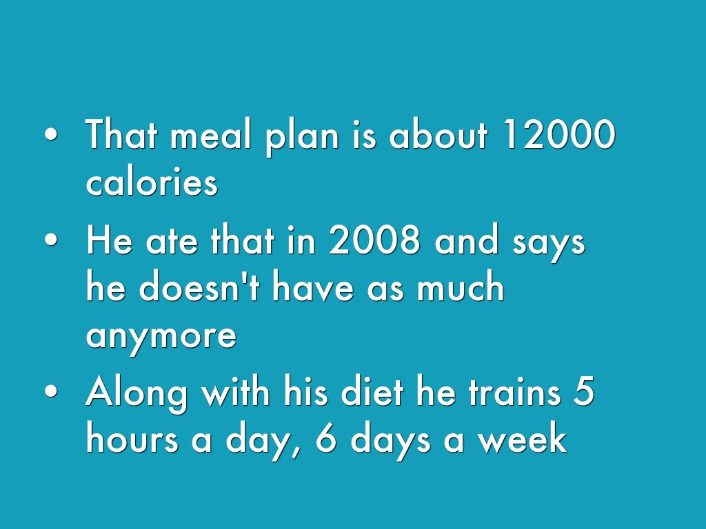 • Along with his diet he trains 5 hours a day, 6 days a week
