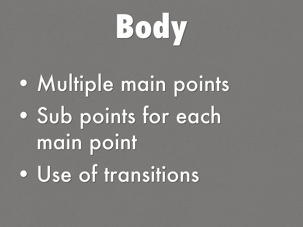 - Sub points for each main point