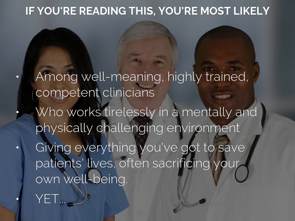 Giving everything you've got to save patients' lives, often sacrificing your own well-being.