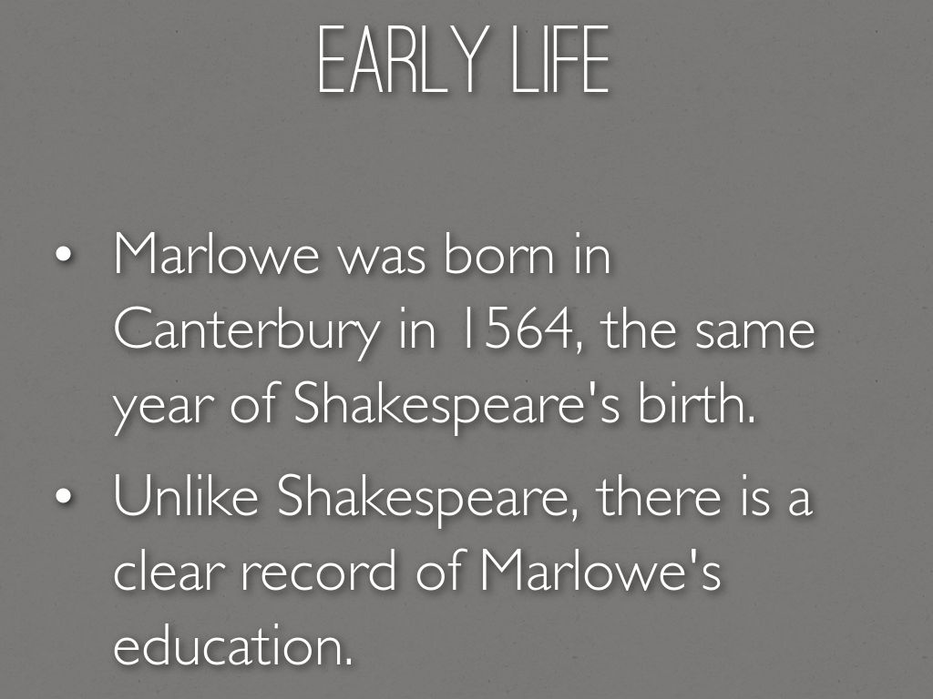 • Marlowe was born in Canterbury in 1564, the same year of Shakespeare's birth.