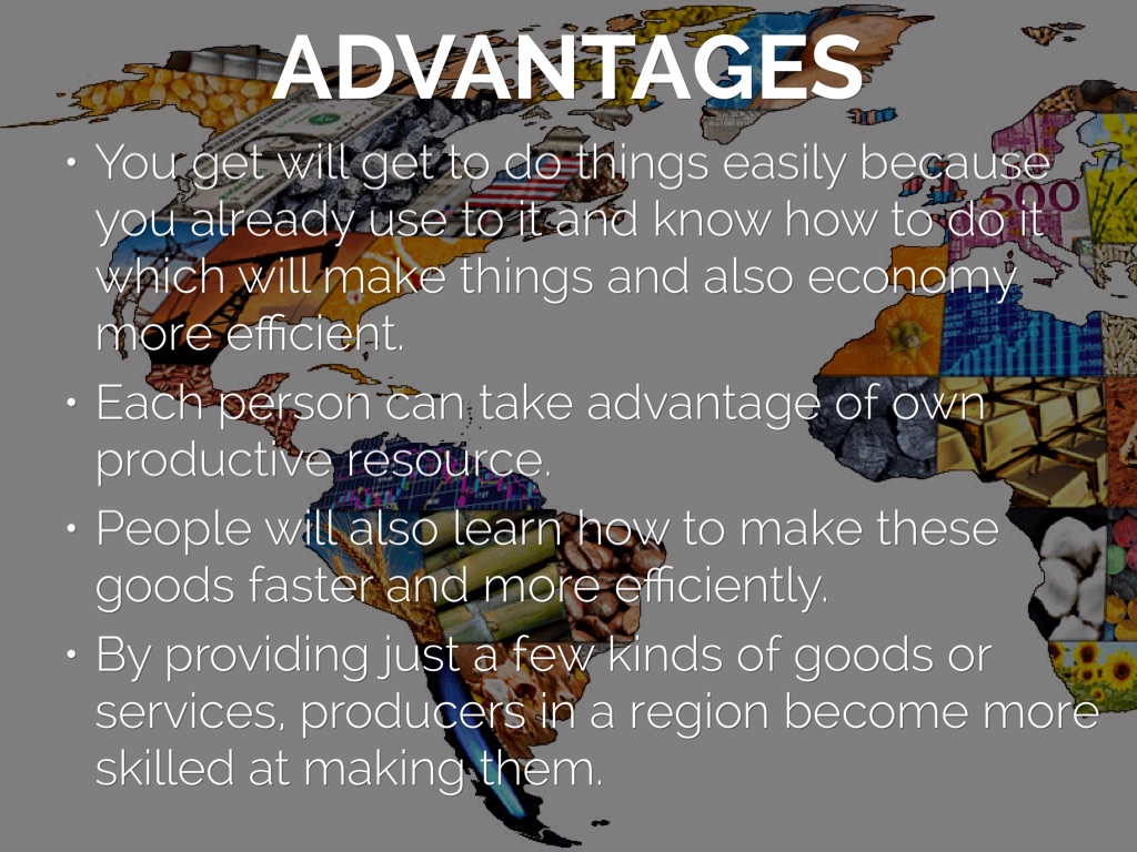By providing just a few kinds of goods or services, producers in a region become more skilled at making them.