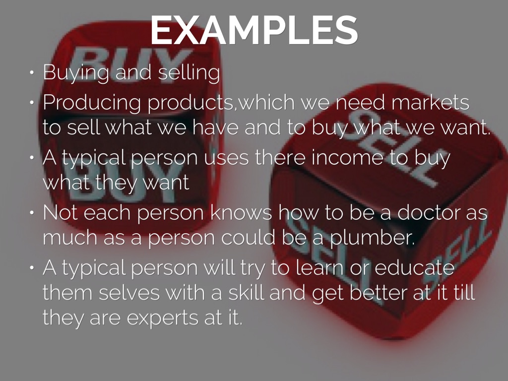Producing products,which we need markets to sell what we have and to buy what we want.