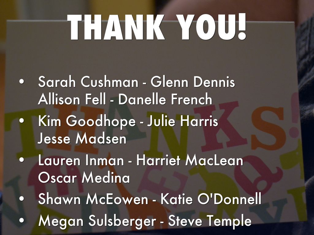Sarah Cushman - Glenn Dennis Allison Fell - Danelle French