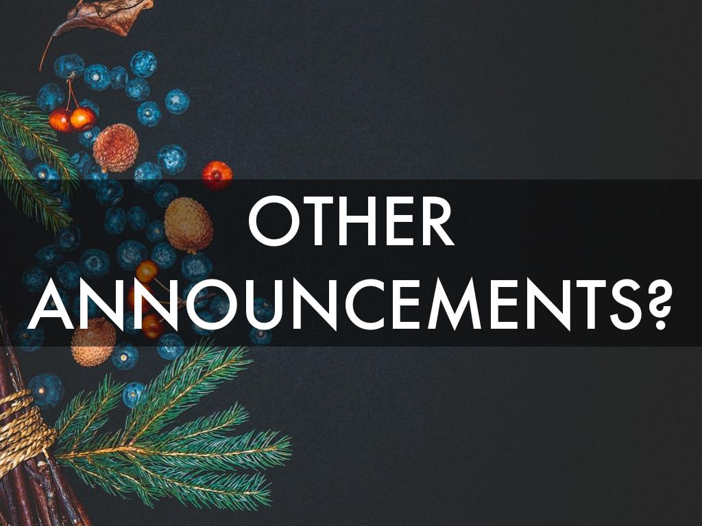 OTHER ANNOUNCEMENTS?