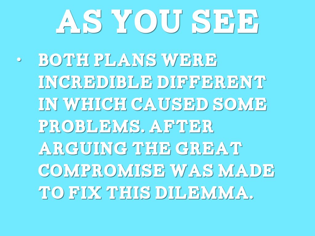 Both plans were incredible different in which caused some problems. After arguing the Great compromise was made to fix this dilemma.
