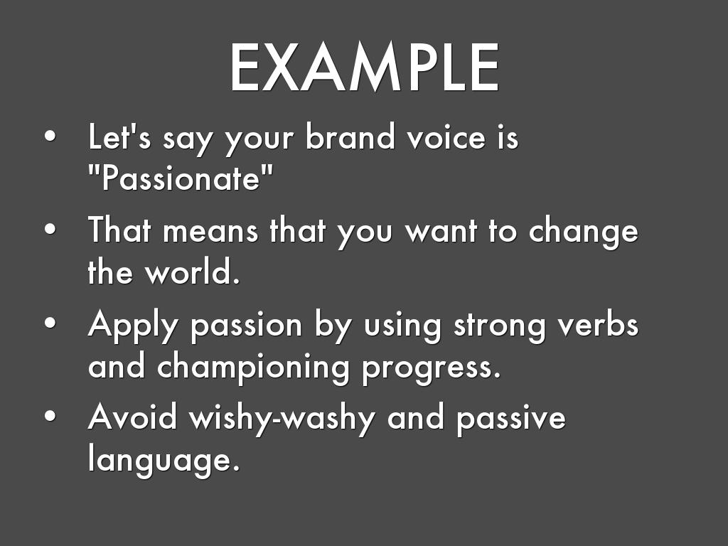 • Let's say your brand voice is "Passionate"